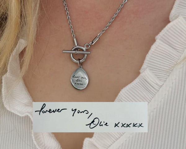Discover our beautiful handwriting jewellery collection, where personal messages become timeless treasures. Take a picture of any writing and let us do the rest.