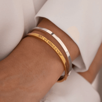 Engraved Bangle With Clasp Gold or Silver: Elegant bangle featuring a secure clasp and custom engraving for a touch of sophistication. Pop the date or message on the inside of the bracelet for secrecy.