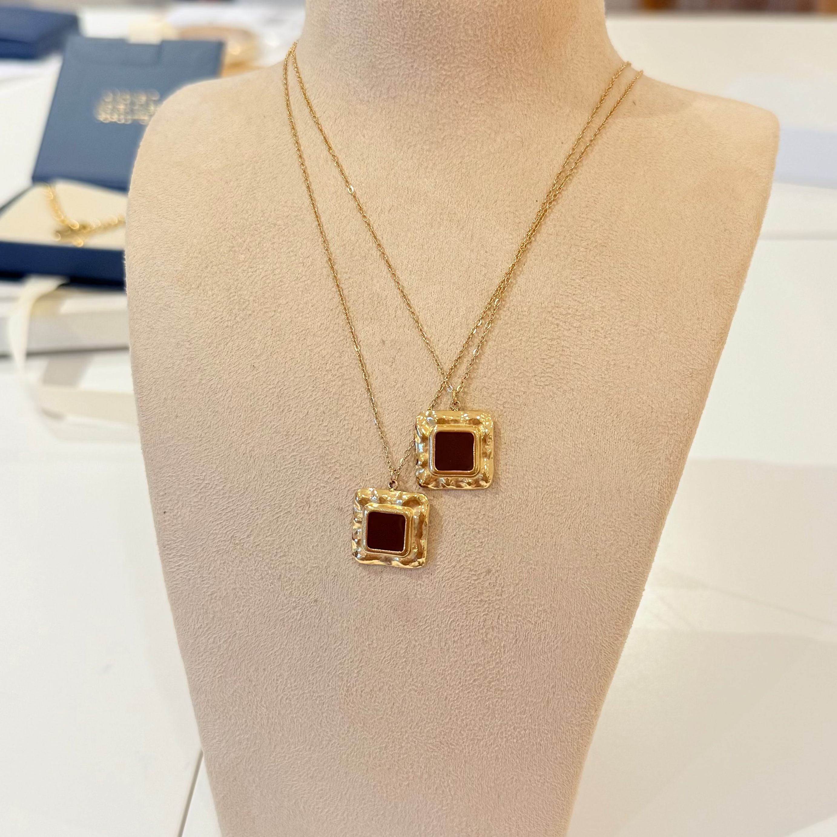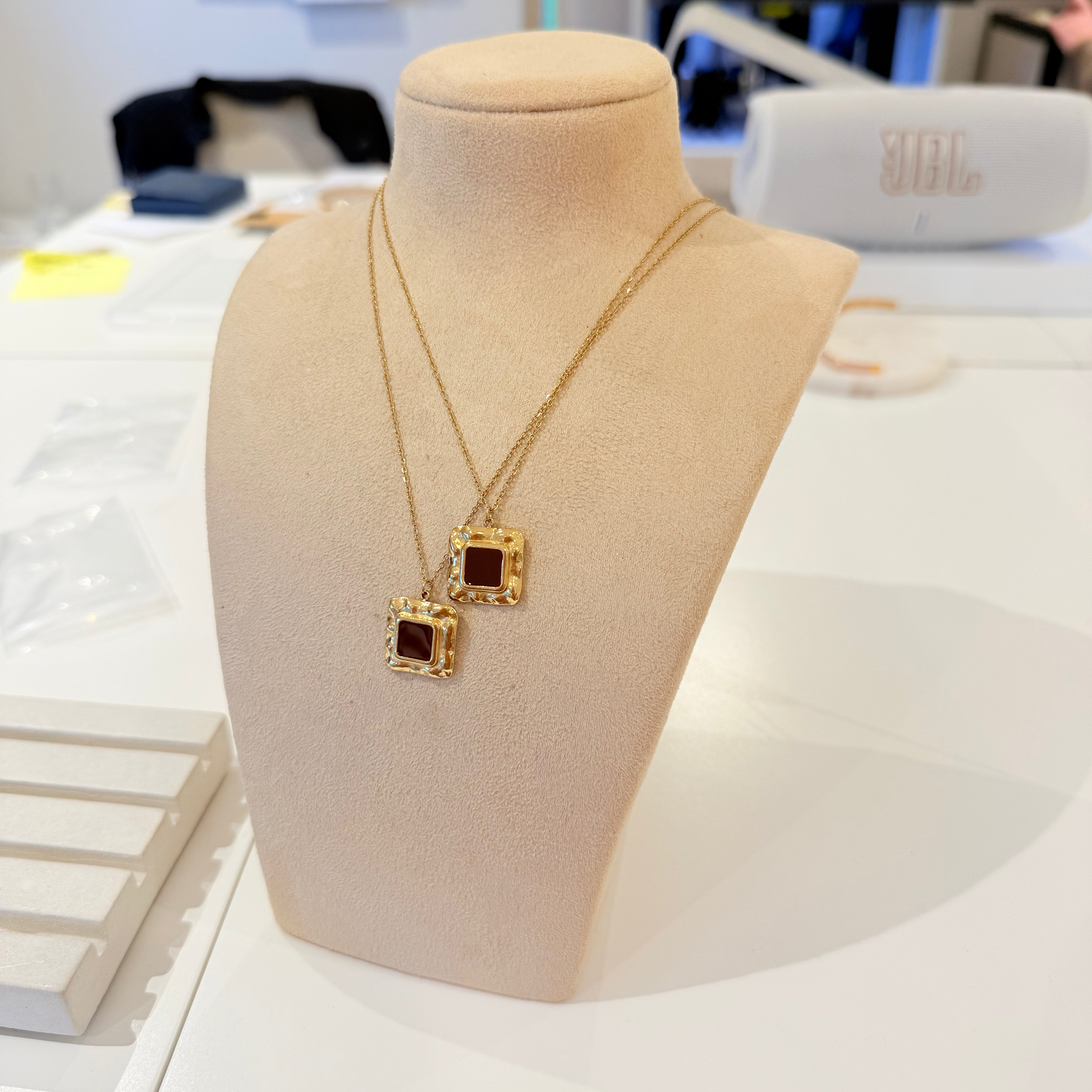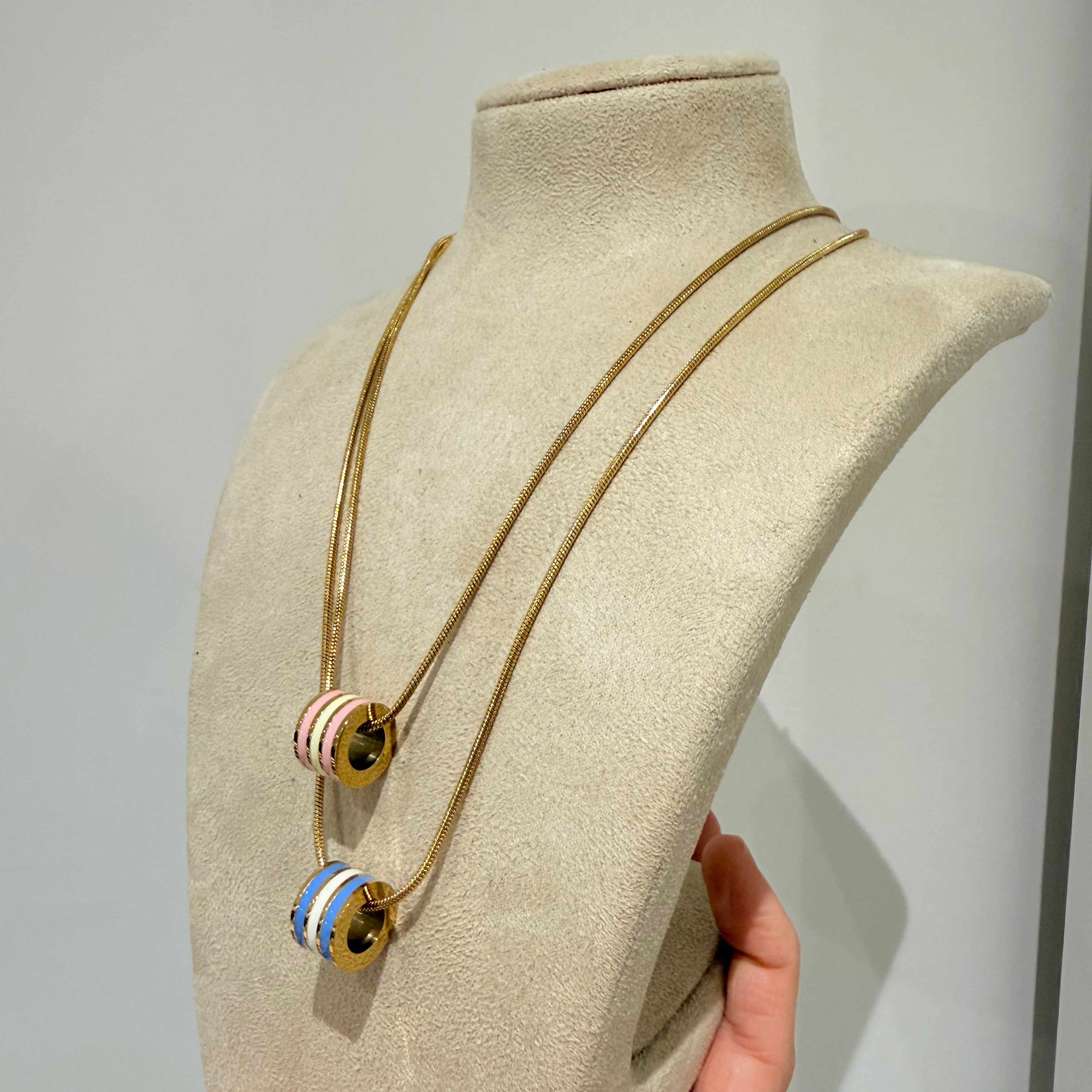 Our necklaces are available in various finishes, including gold, rose gold or silver, and feature durable enamel detailing. Whether you're layering with our bracelets or seeking a standalone statement, these pieces offer versatility and personal significance