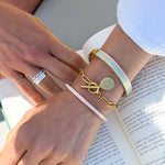 Enamel stacking band bracelets, flexible to fit your wrist. Pair one with a chain bracelet, Signature Bangle or wear two colours together.