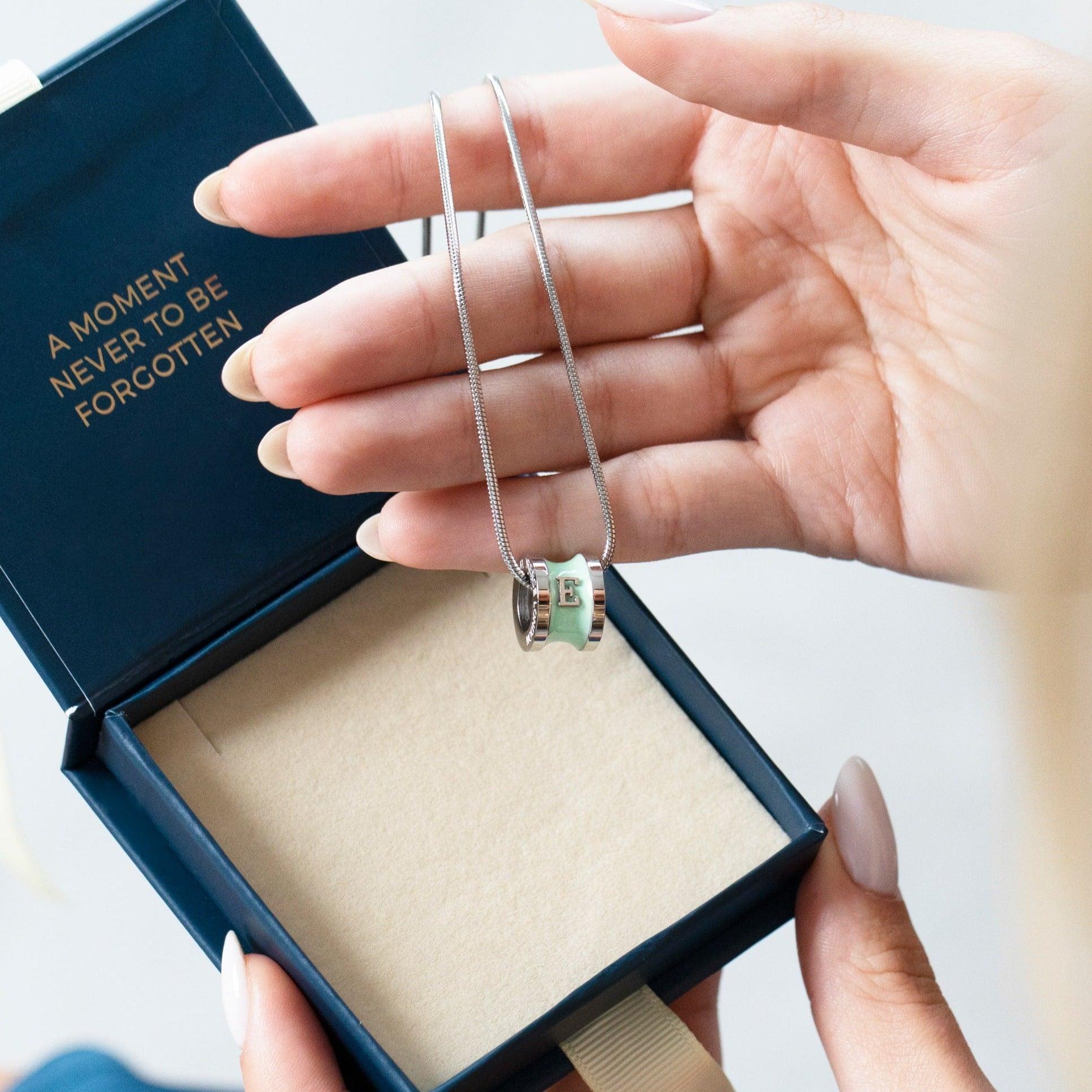 Choose your enamel colour, chain style and your initial to create your necklace that will be handmade to order. To make it extra special, you can engrave your own message to the side of the barrel pendant, see the different fonts to choose from.