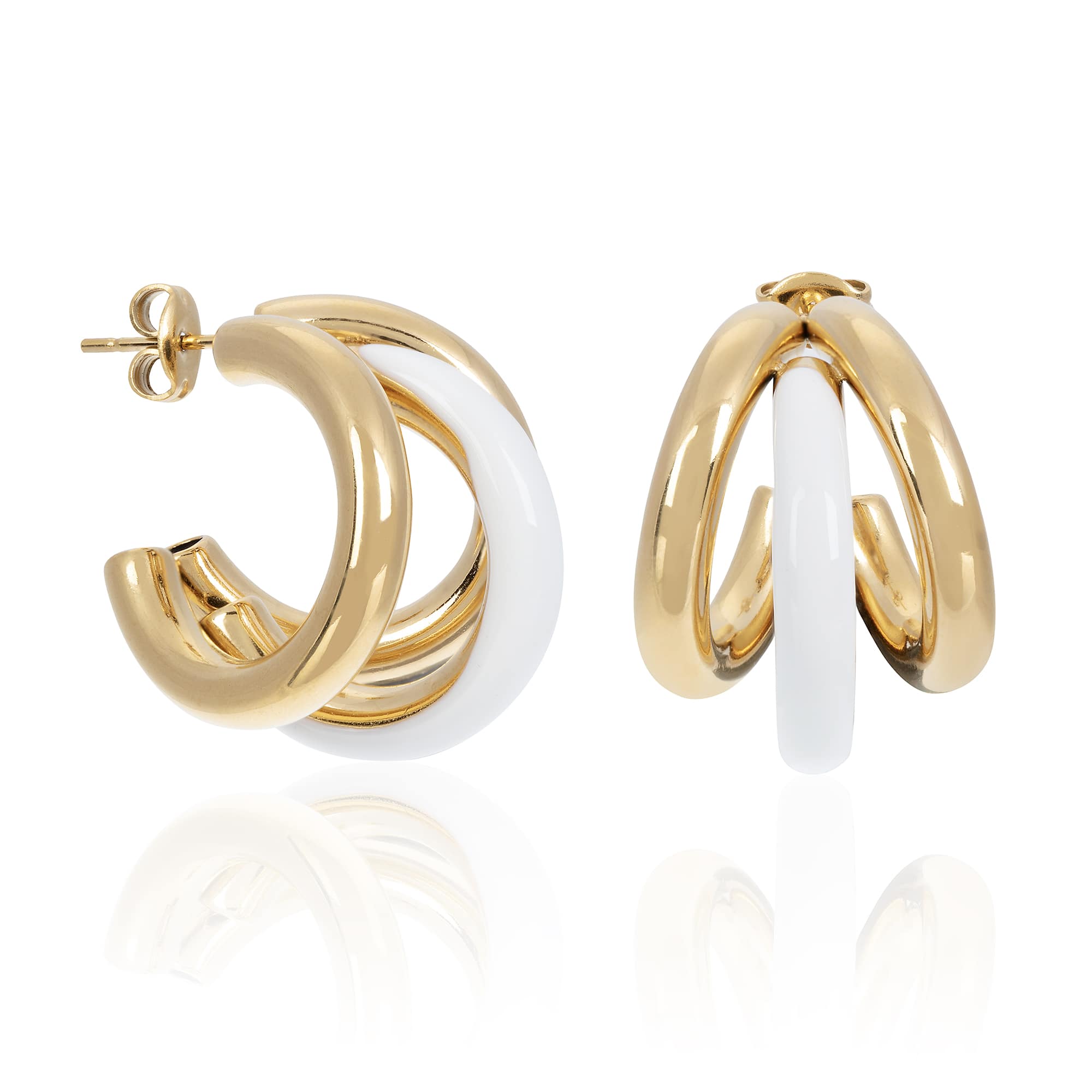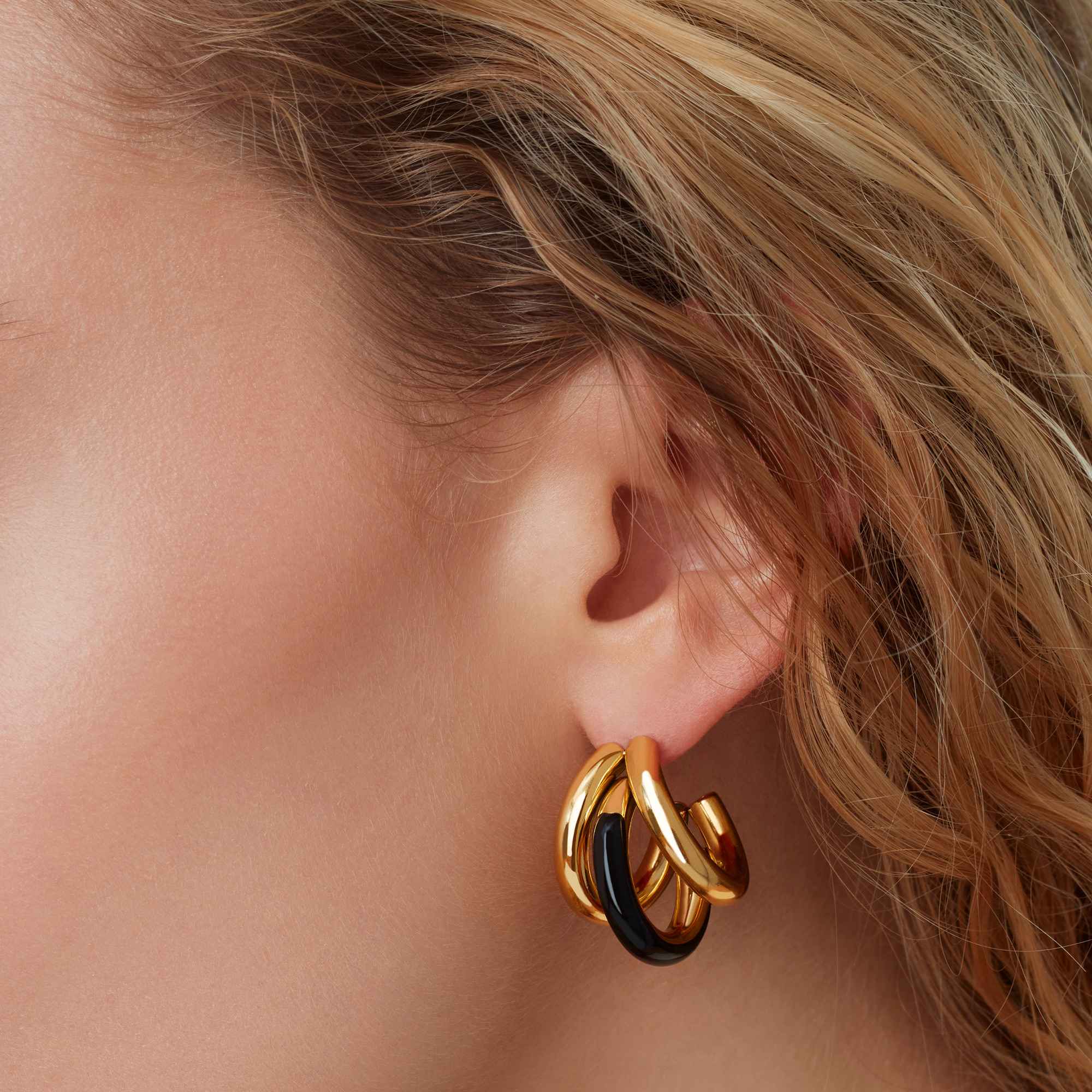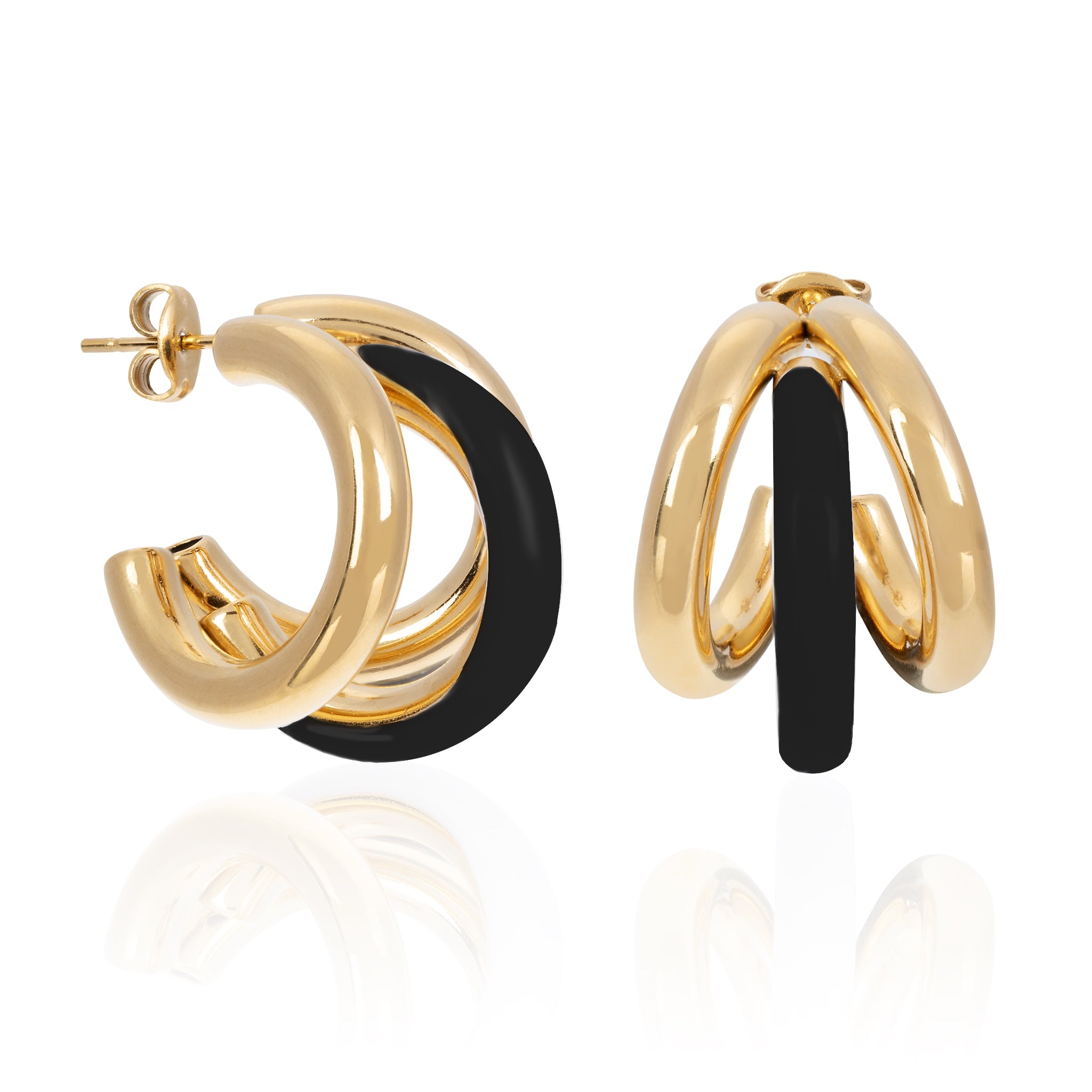 These fun hoops feature three c-curves with the central one being black or cream in colour.  They look great for day or evening wear and add a touch of luxury to your style.