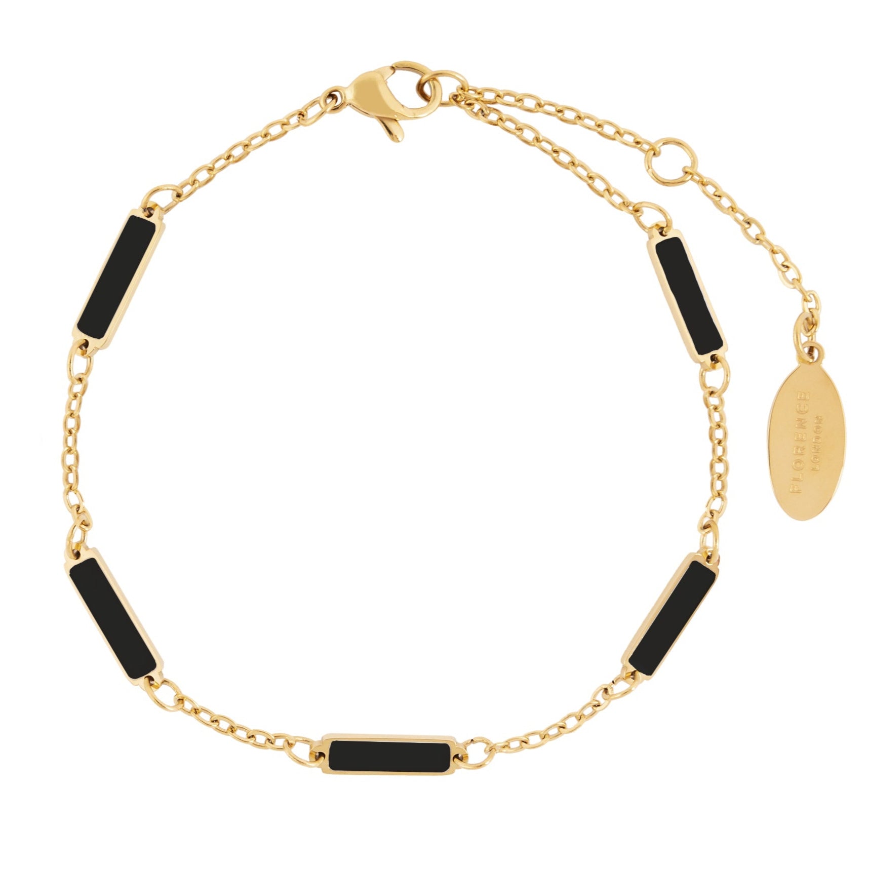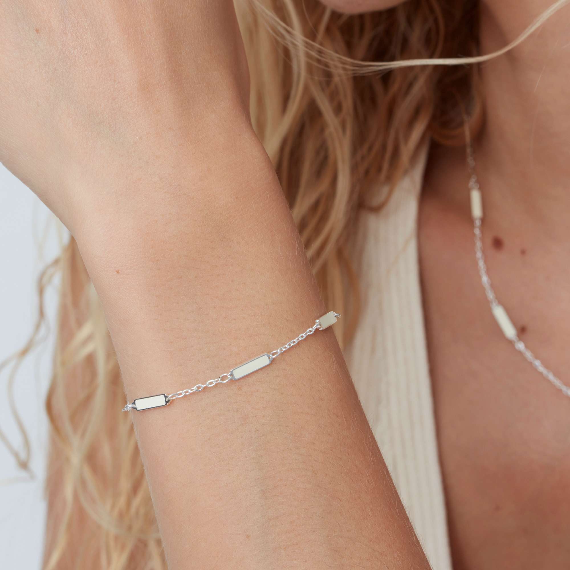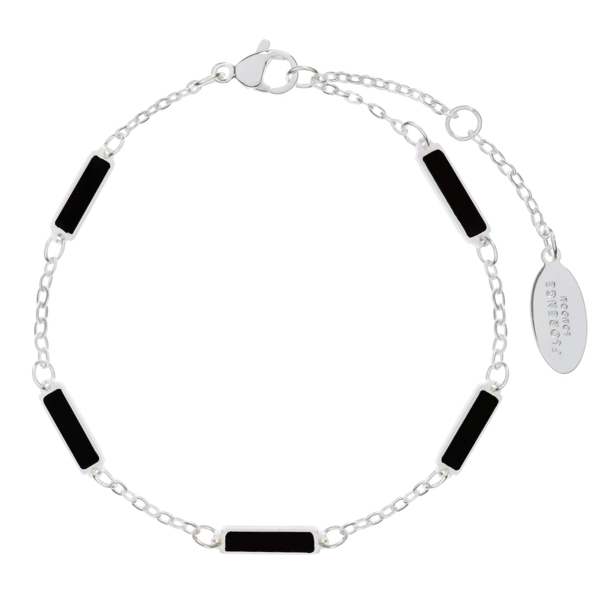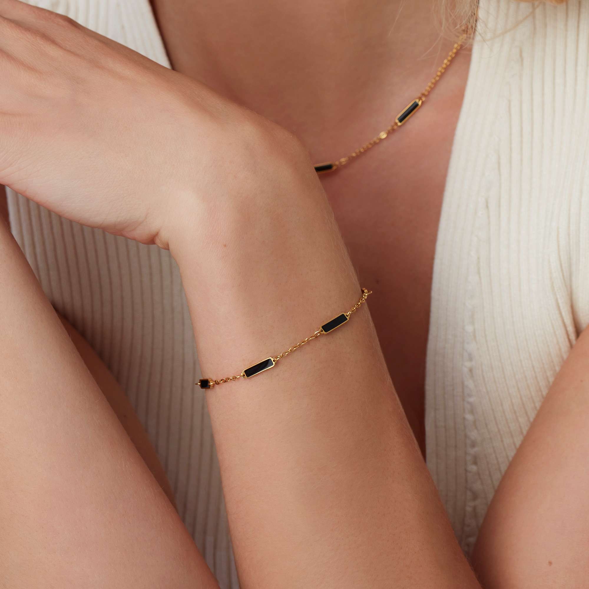 An everyday chain decorated with beautiful bar icons. Each icon is filled with enamel on one side and left plain on the reverse. The chain is 16.5cm long with a 3.5cm extender. Available in black or cream enamel with a gold or sterling silver finish.