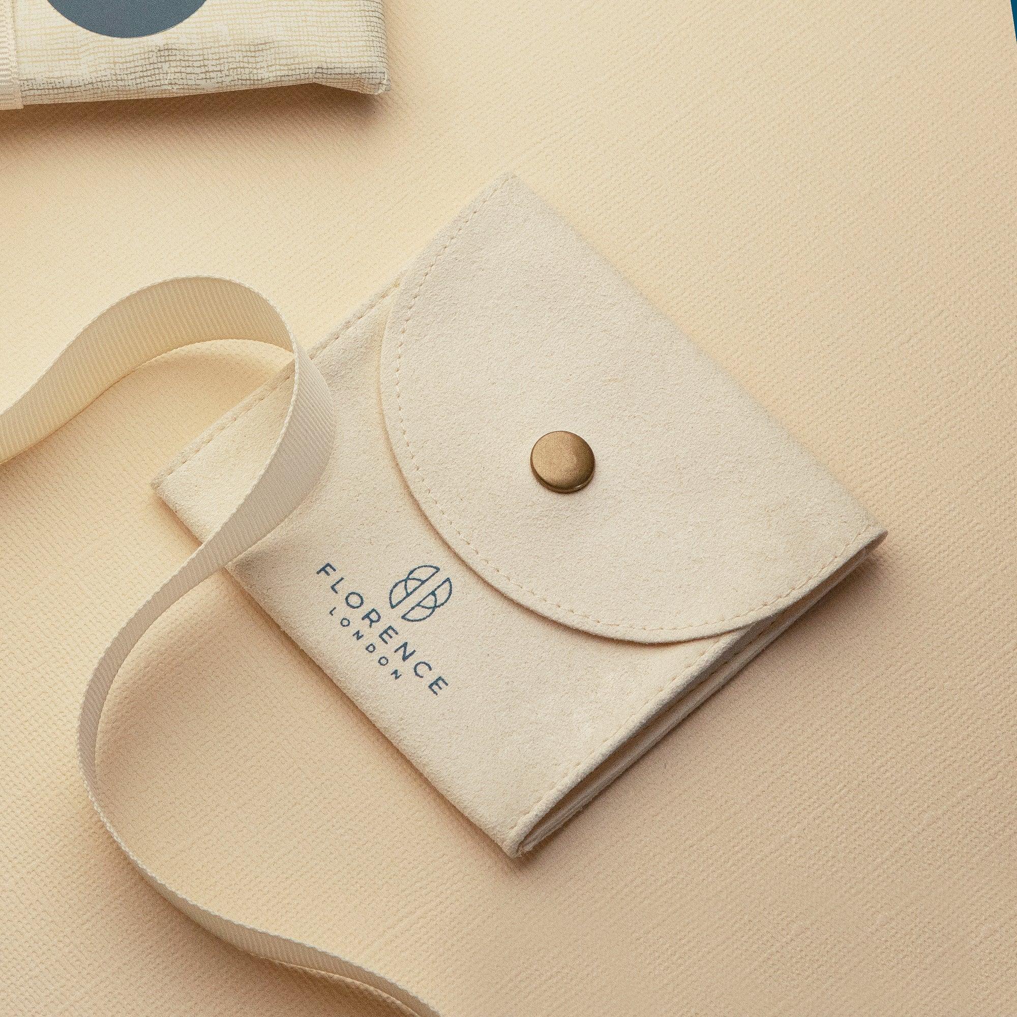 - They arrive in a soft faux-suede pouch that is perfect for travelling with or storing your jewellery inside.