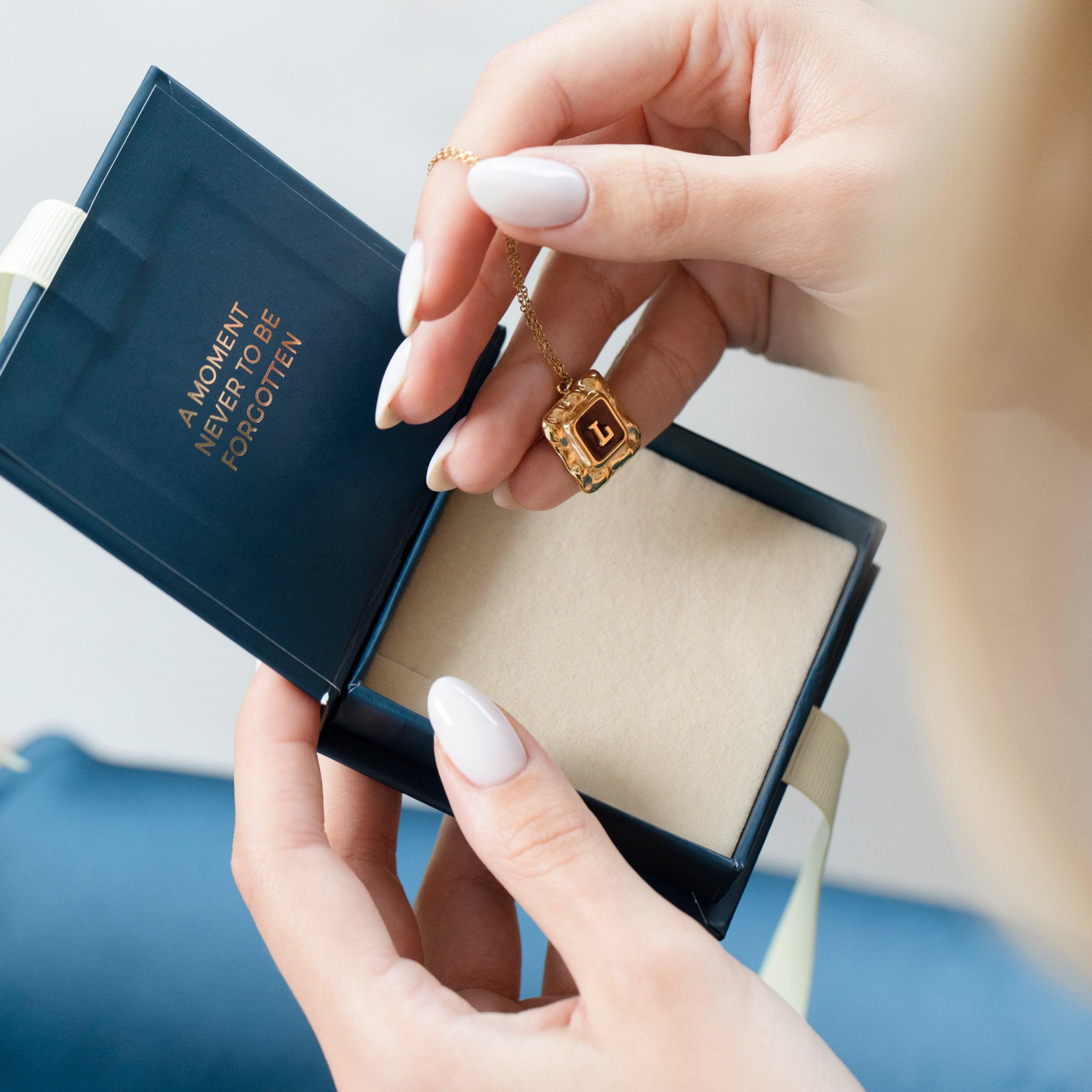 Our beautiful Vintage Gold Initial Necklace is personalised with a raised gold letter to make it your own.
