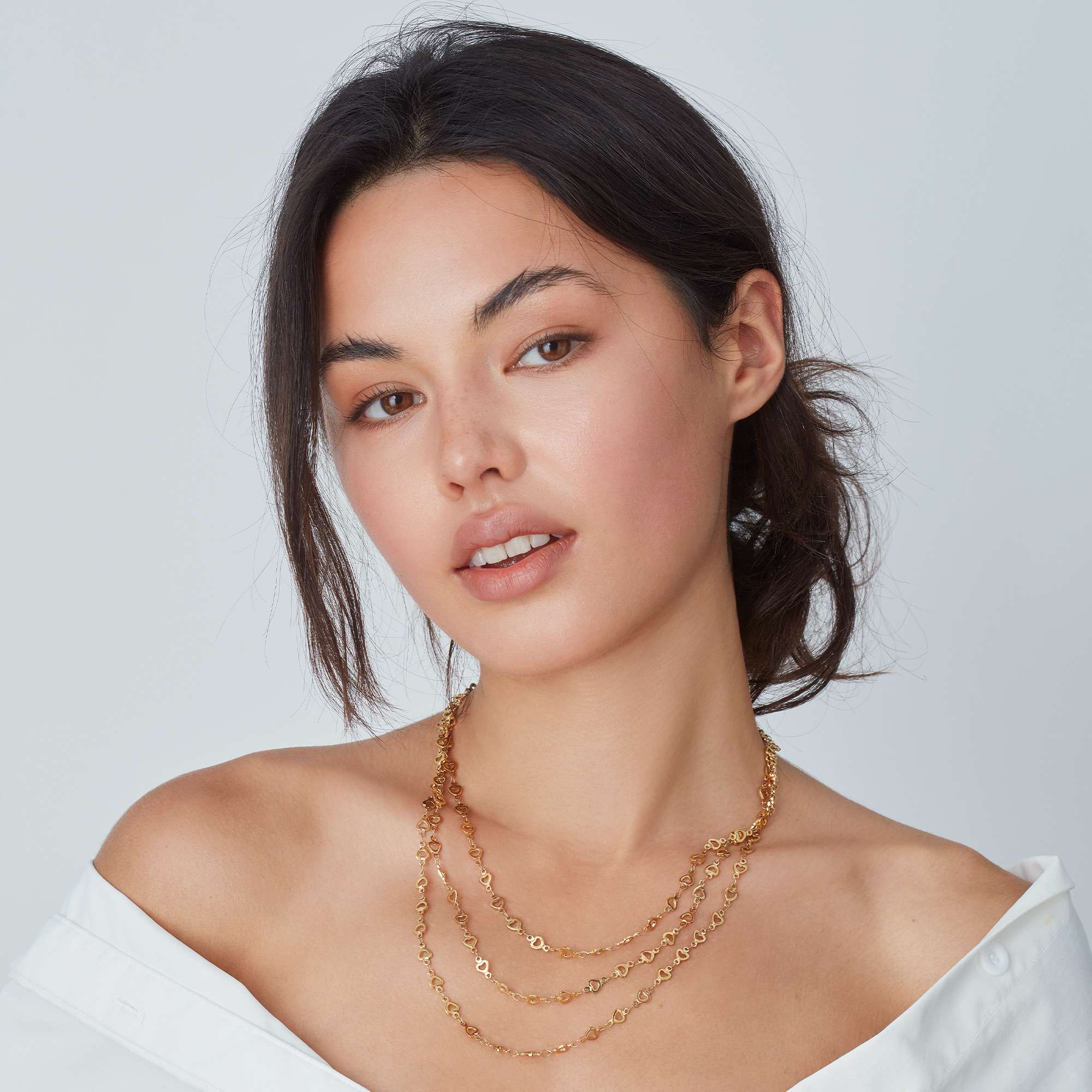 A beautiful, lightweight chain designed to be worn every day. They come in three lengths: 40cm, 50cm or 55cm all with a 5cm extender. We love this necklace on it's own but it also looks beautiful alongside chunkier pieces.