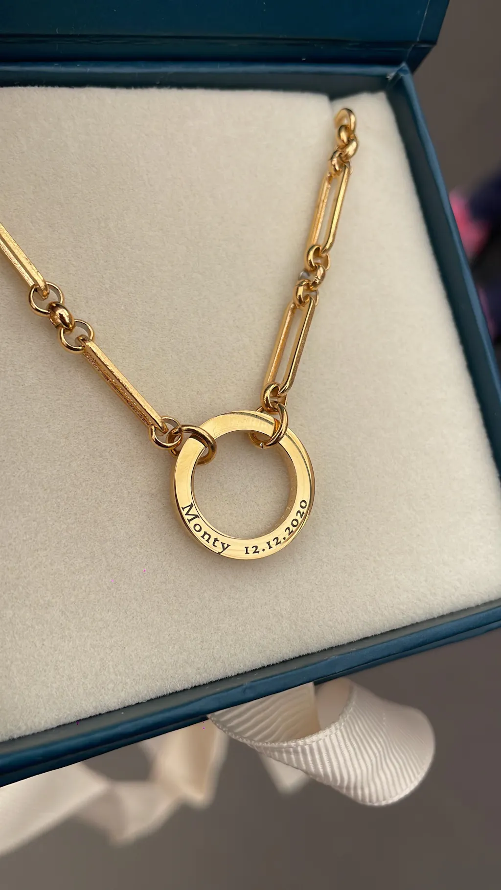 Our much loved halo design sits on our new paperclip chain creating a contemporary and stylish necklace.