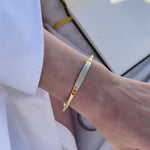 This beautiful bracelet adds to any bangle or chain to create a stylish stack. A free engraving on the inside, outside or both sides is optional.