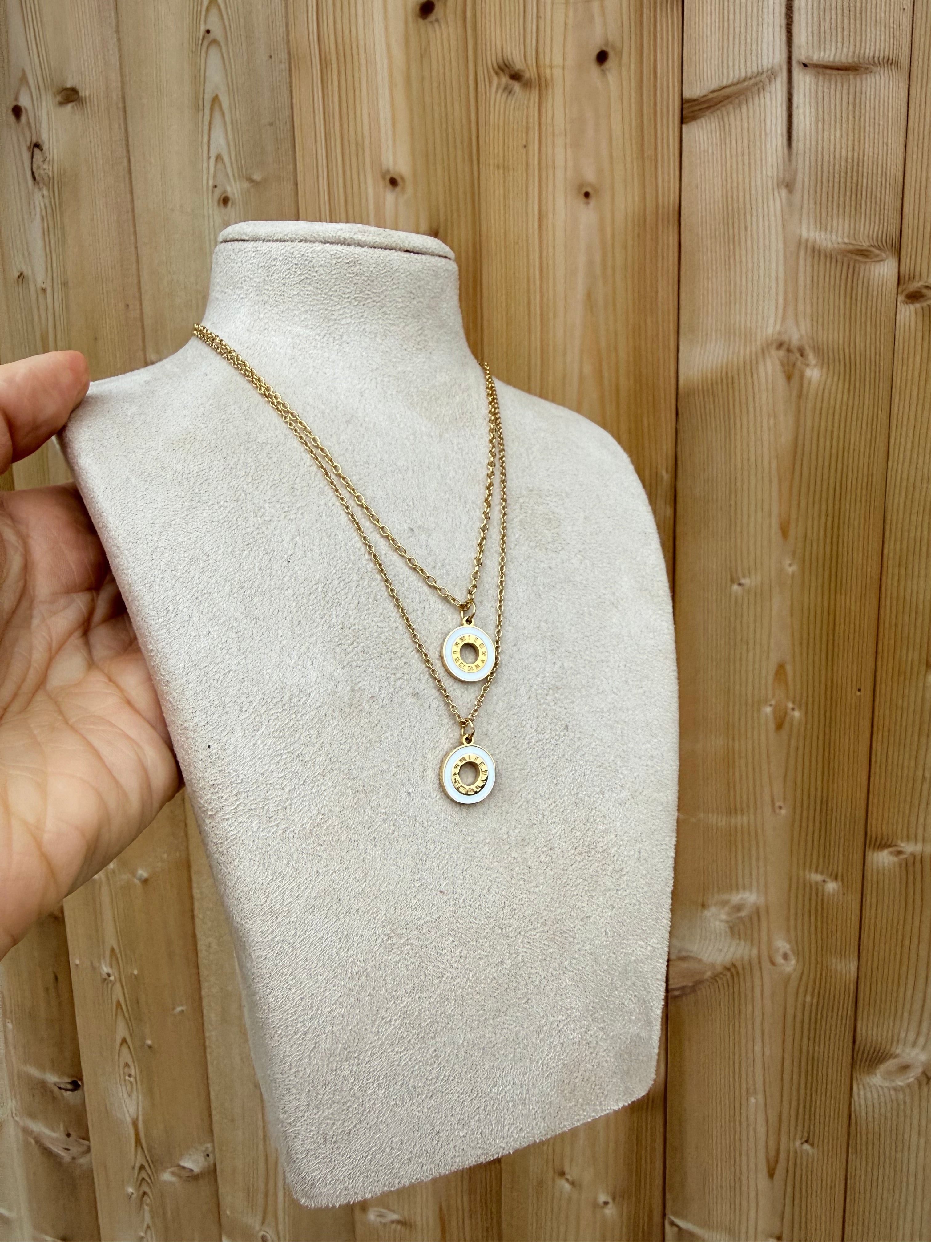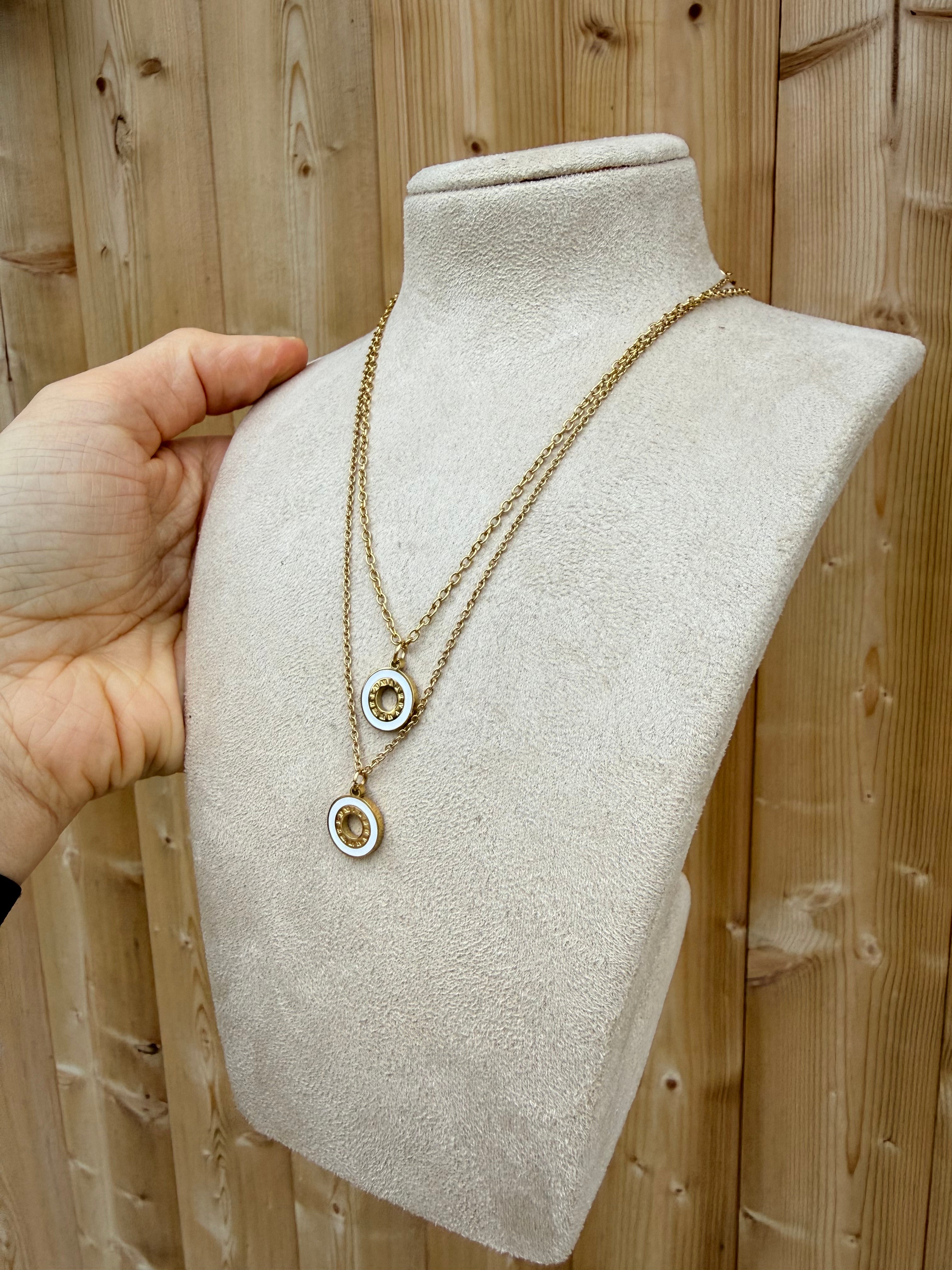 SAMPLE (New) - Roman Numeral Gold Cream Pendant Necklace