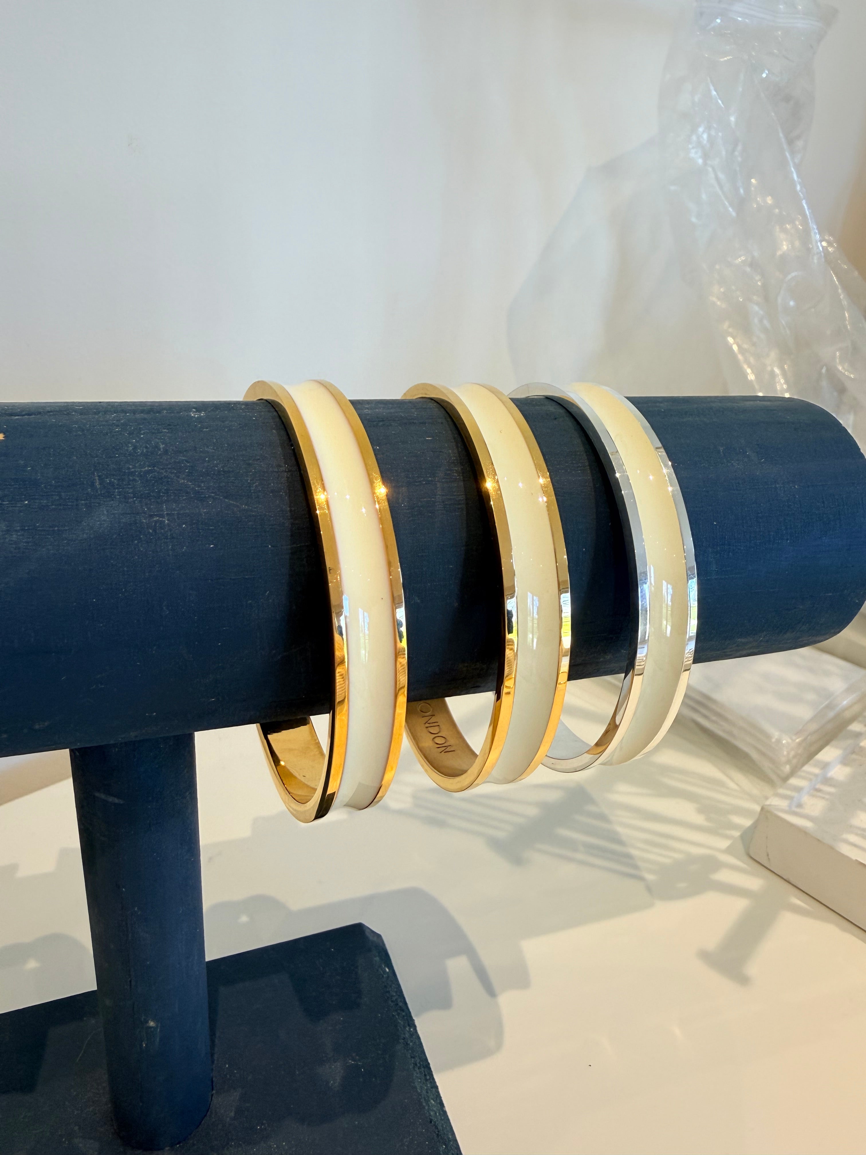 Our enamel bangles are made from three core materials:
