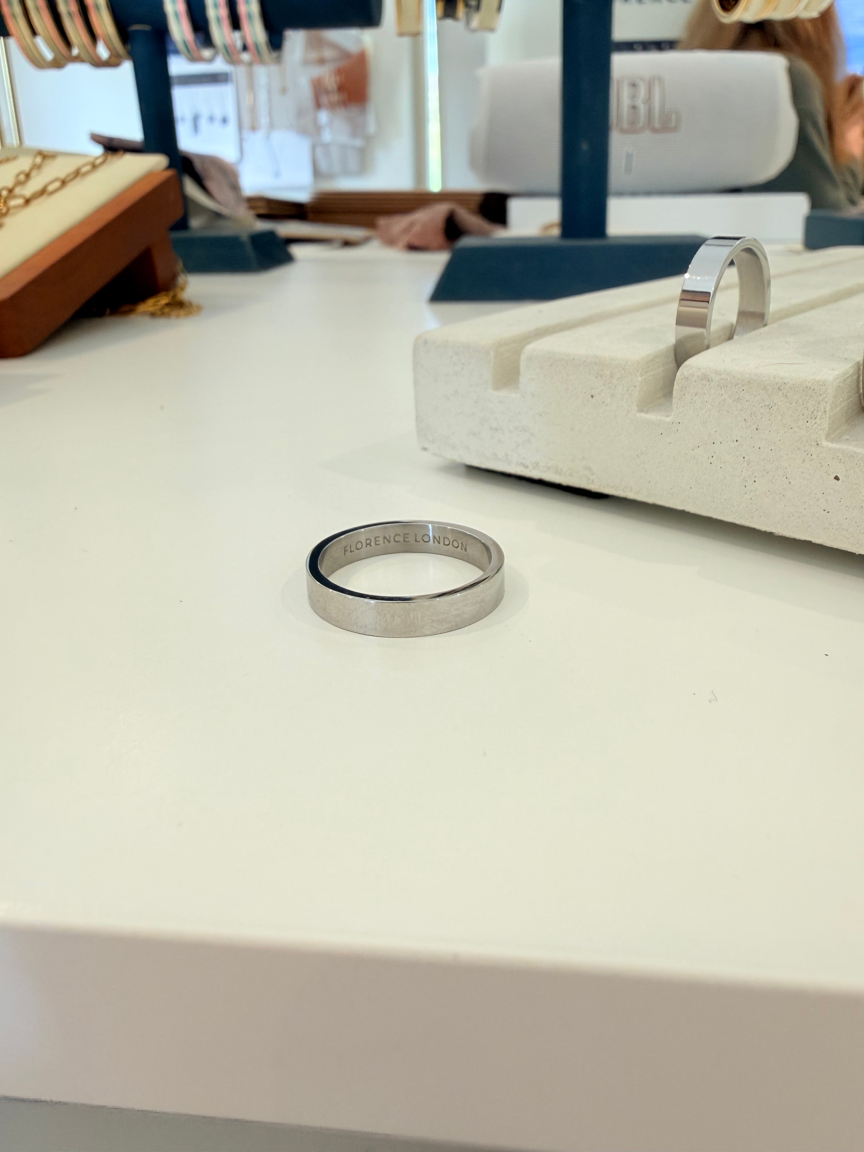 Chunky silver ring, perfect for personalising with names, dates and initials to make for the perfect gift to your loved one. Alternatively, wear individually for a simple, stylish look!