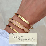 Engrave a loved ones handwriting forever with this stunning bracelet. Upload a picture of their writing from a greetings card, letter, doodle or note and we will turn your file into a beautifully engraved piece of jewellery.
