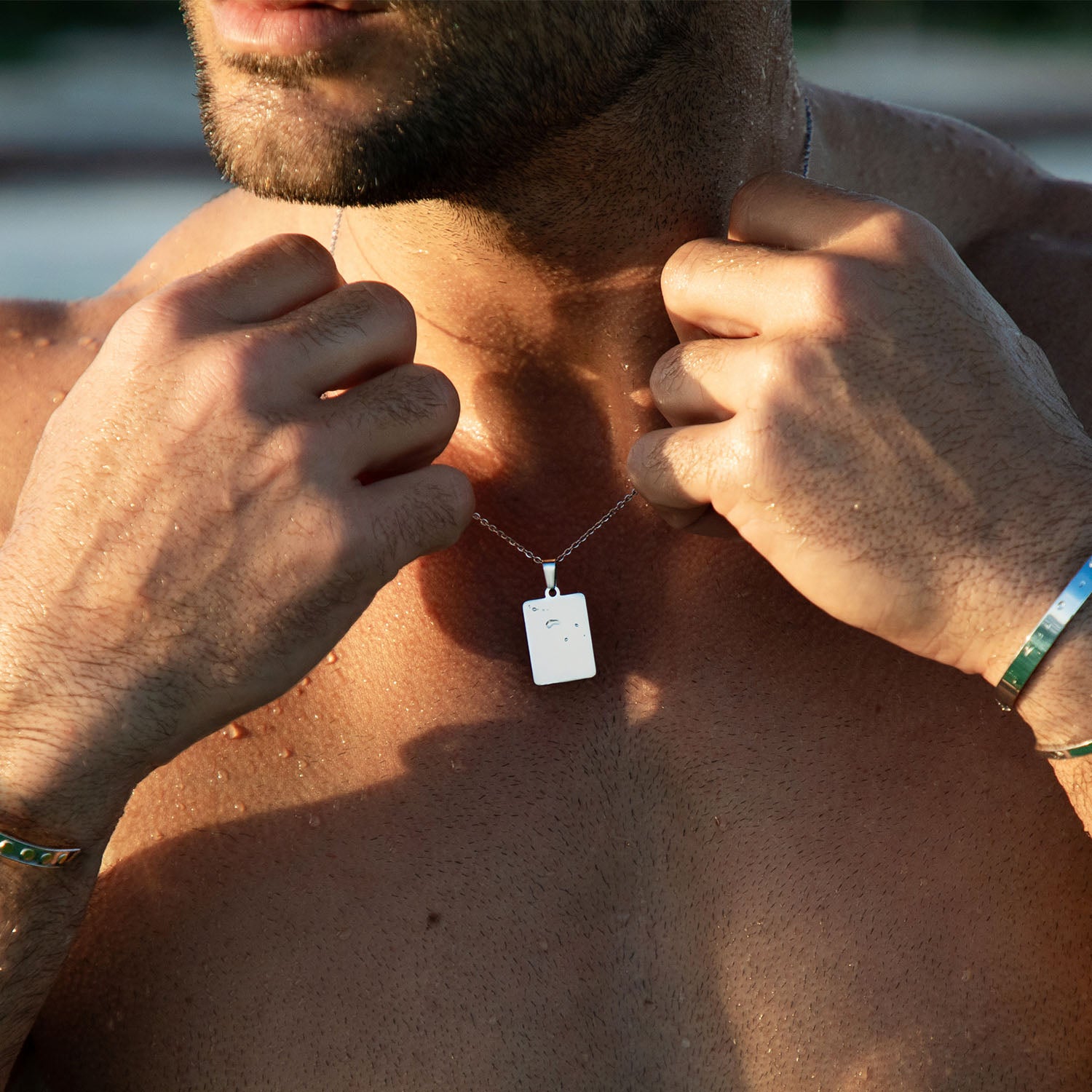 Men's pendant necklace engraved with genuine handwriting finished in gold or silver, 47cm chain.