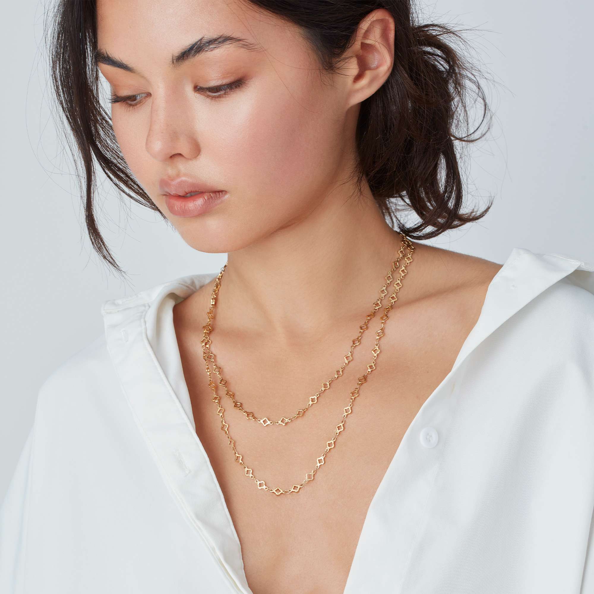 A beautiful, lightweight clover chain designed to be worn every day. They come in three lengths: 40cm, 50cm or 55cm all with a 5cm extender. We love this necklace on it's own but it also looks beautiful alongside chunkier pieces.