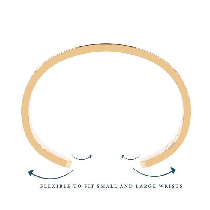 This dainty cuff is malleable to fit 2–10-year-old boys and girls. It is firm but flexible to be shaped as the child grows. Before self-moulding, this cuff measures: 5cm inner width | 3cm inner height | 2.5cm bottom gap