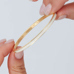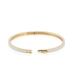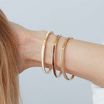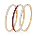 Our fail safe clasp mechanism on a slim enamel bangle that adds a touch of luxury to a daily look. Waterproof, tarnish proof and durable. Available in three stunning colours: cream, latte or burgundy. These bangles are lightweight and comfortable. They come in two sizes: 59mm inner diameter (for wrists up to 17cm) or 64mm inner diameter (for wrists up to 21cm).