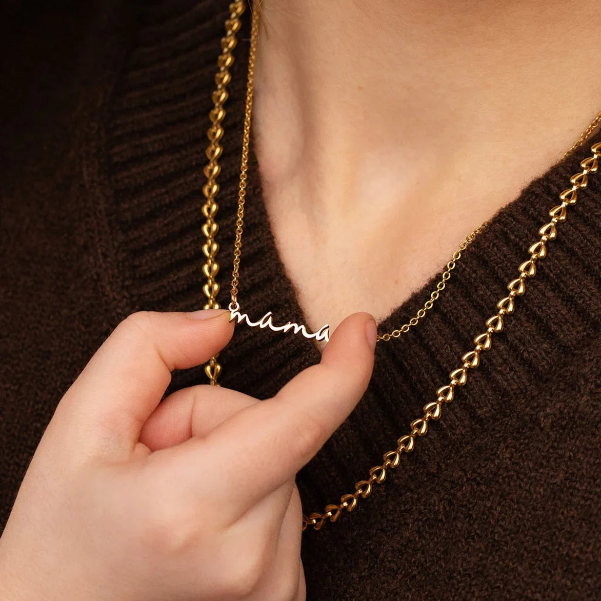 This Mama necklace is a true treasure—beautifully crafted, timeless and deeply sentimental. The perfect keepsake! The quality is outstanding, with a well-made design. The extender is a bonus which makes it versatile for layering.
