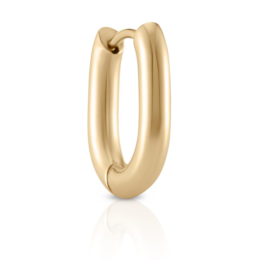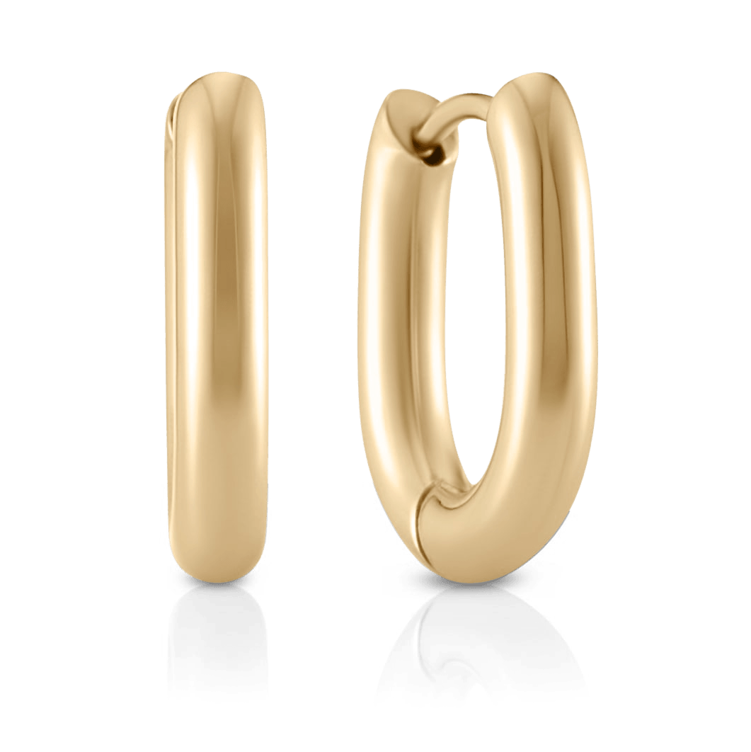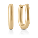 Rectangle gold huggy hoops perfect for stacking, in the first or second hole. 1.6cm tall. Sold as a pair.