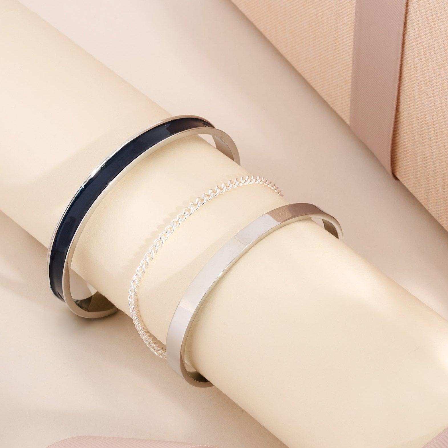 Personalised engraving on the Men's Engraved Bracelet and inside the Signature Cuff is optional. To add this service for free, please tick the box and write down your font choice and engraving for each bracelet. Please include as much detail as possible so that we know exactly what you'd like. Embossed outside lettering on the bangle is not included in this set.