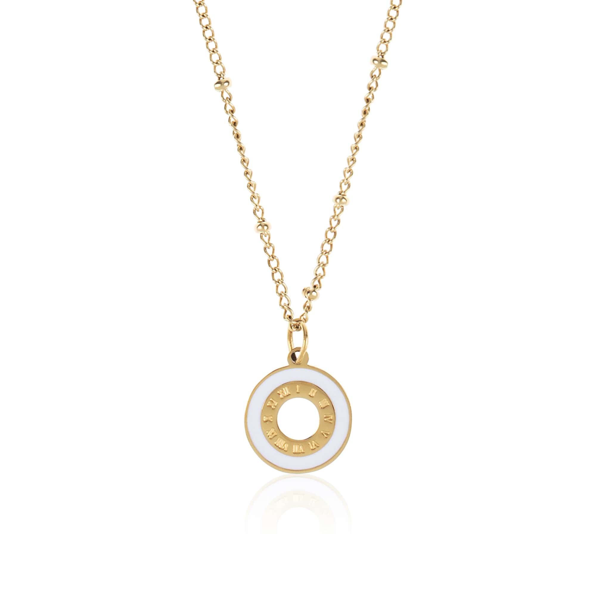 A small enamel pendant decorated with 1-12 in Roman numerals in a circle signifying 'forever'. Comes on a pretty bead chain, 45cm long with a 5cm extender.