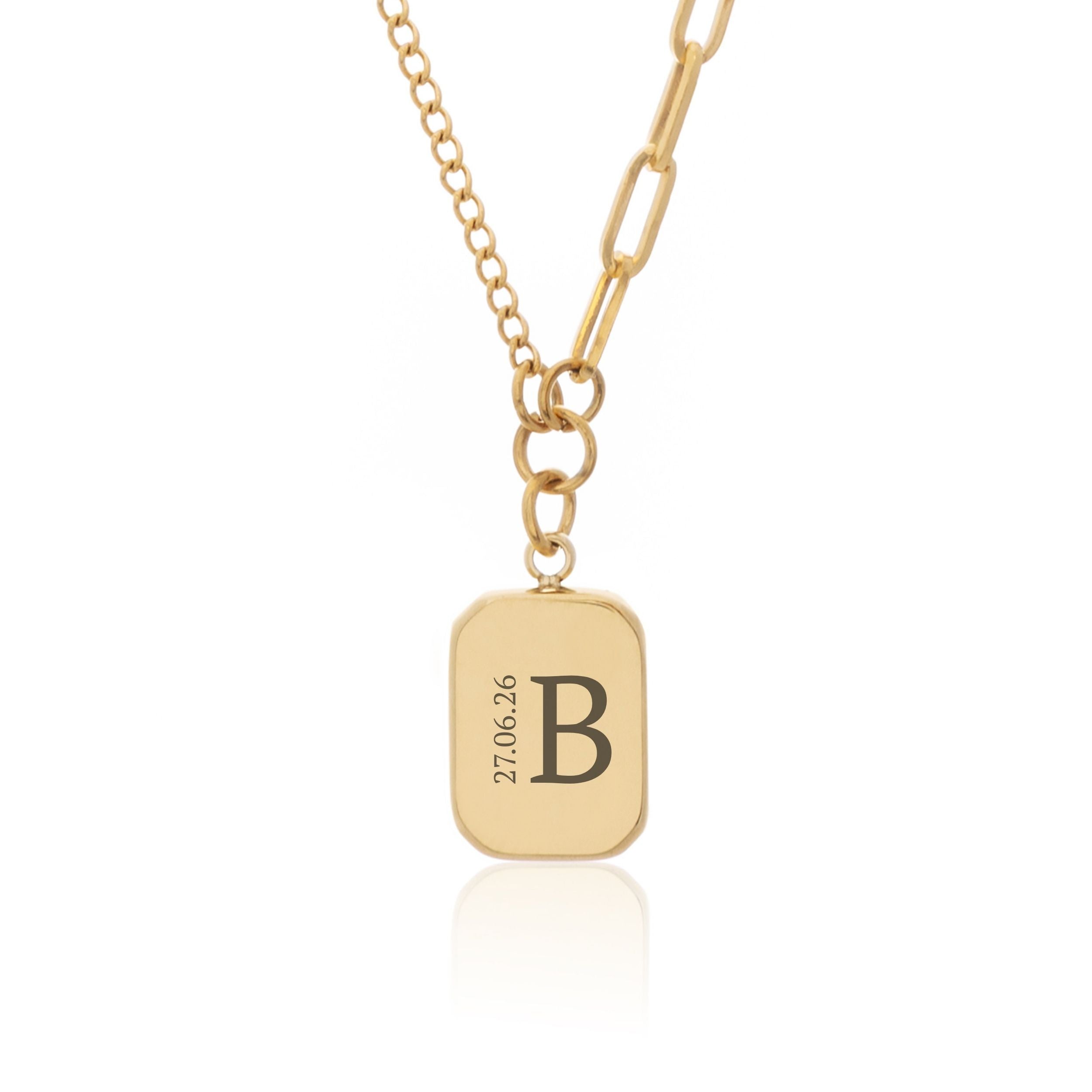 Gold Brick Enamel Necklace Initial and Date