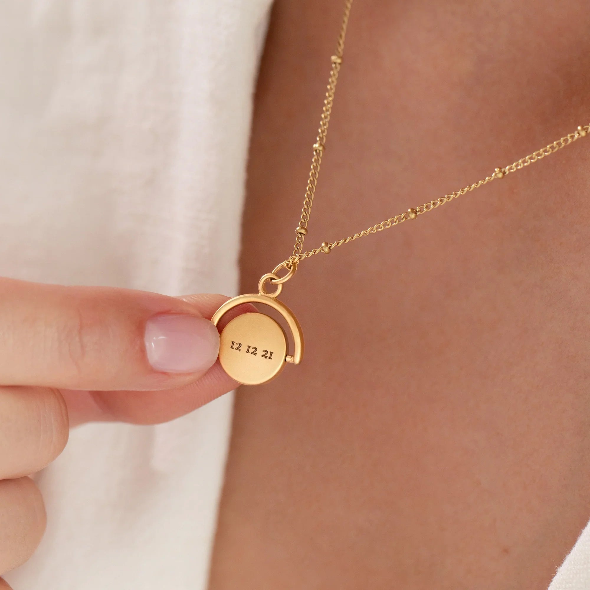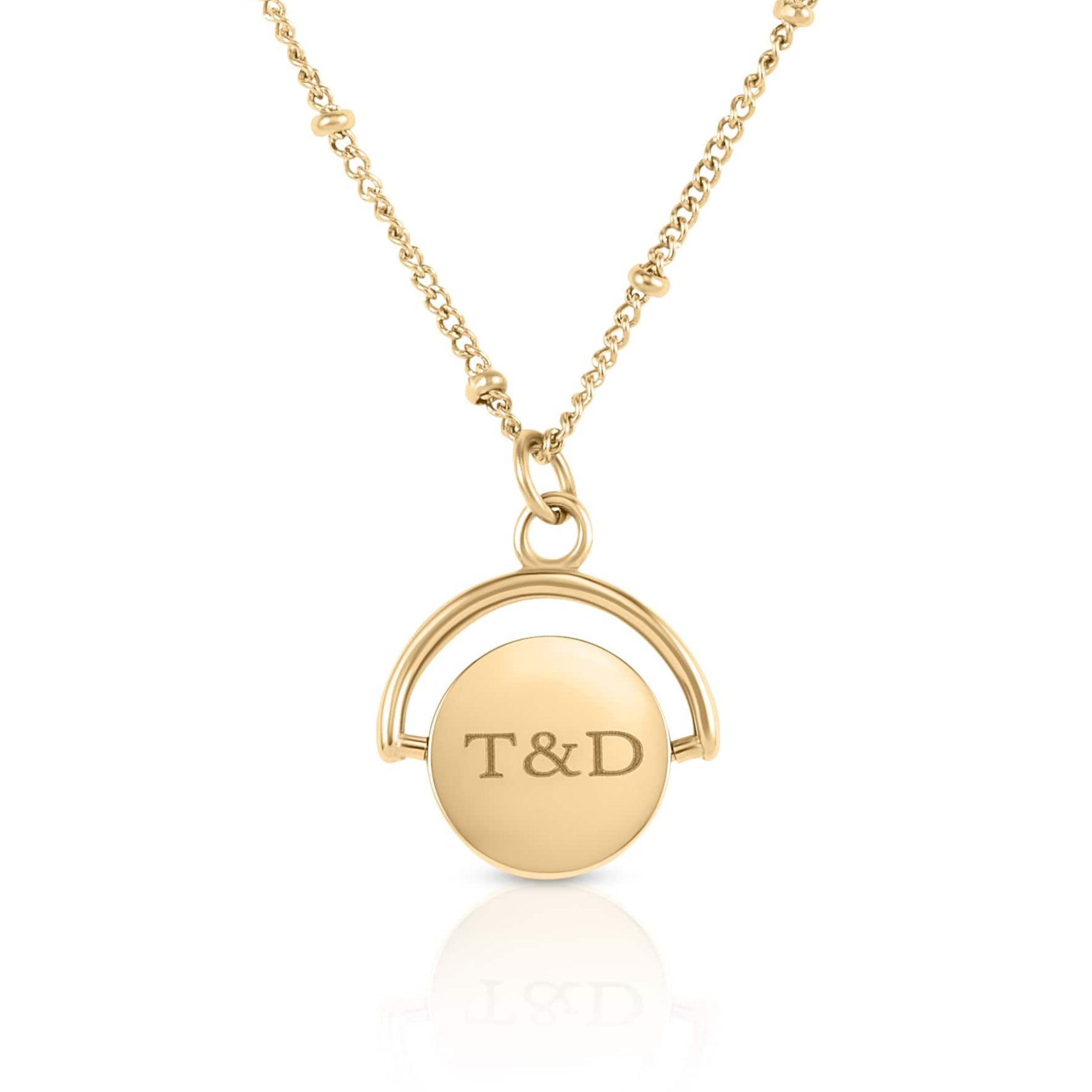 Stunning spinning disc enabling two sides of engraving sitting on a stylish bubble chain.