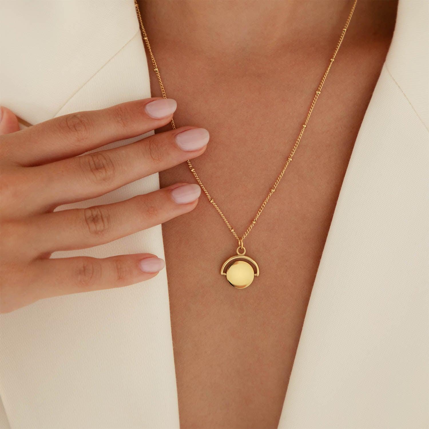 This necklace is made from luxurious 18ct gold plate with a matte finish that never tarnishes even throughout years of daily wear. We also use tarnish resistant, lead-free stainless steel on the base for its durability and ease of care. This wonderful combination has been an incredible success for us since it will not oxidise or turn skin green! Our jewellery does not contain brass or nickel.
