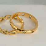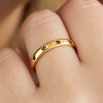 A gold ring featuring cut out star shapes, designed to add style to your stack.