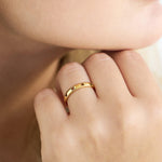 Our rings are made from luxurious 18ct gold plate that never tarnishes even throughout years of daily wear. We also use tarnish resistant, lead-free stainless steel on the base for its durability and ease of care. This wonderful combination has been an incredible success for us since it will not oxidise or turn skin green! Our jewellery does not contain brass or nickel.
