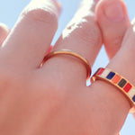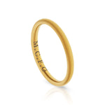 An incredibly comfortable band designed to stack against others or wear alone. It can be engraved with tiny little initials, names or dates.