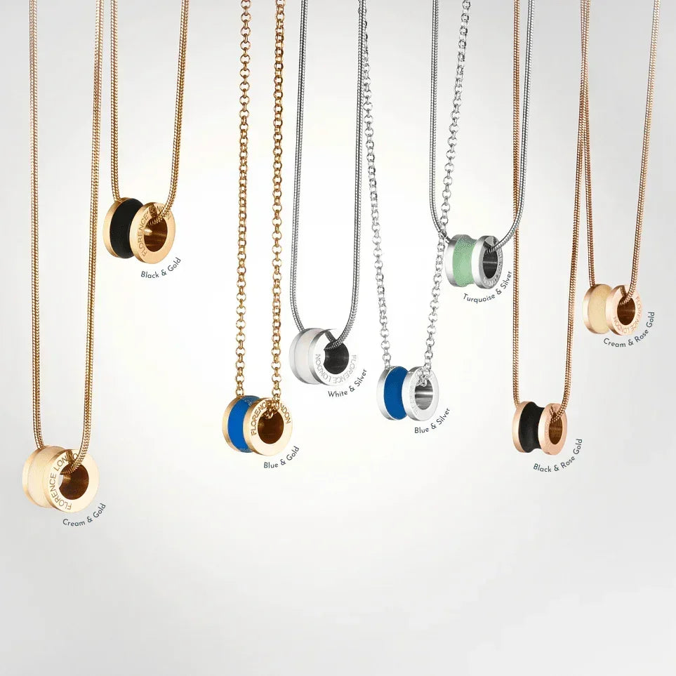 Our Signature Initial Necklace is a Florence London original. This barrel necklace design, handmade in enamel is a timeless, elegant piece that can last a lifetime.