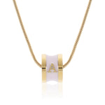 Our Signature Initial Necklace is a Florence London original. This barrel necklace design, handmade in enamel is a timeless, elegant piece that can last a lifetime.
