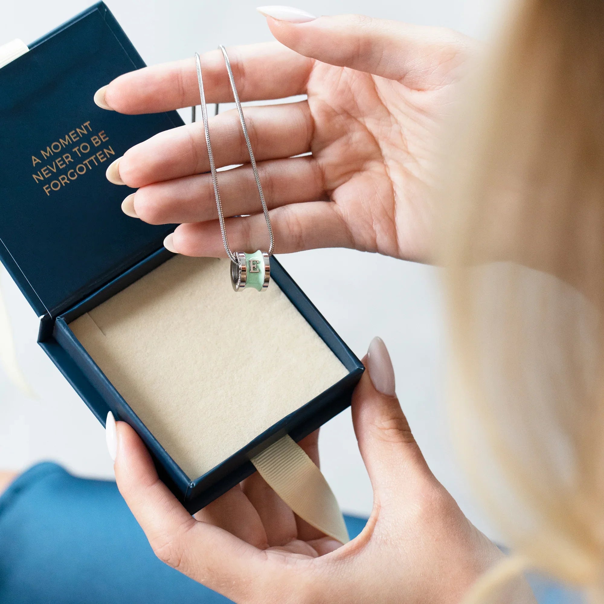 Choose your enamel colour, chain style and your initial to create your necklace that will be handmade to order. To make it extra special, you can engrave your own message to the side of the barrel pendant, see the different fonts to choose from.
