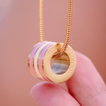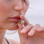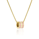 Our signature necklace now in a new design - an enamel barrel in blue or pink stripes. The perfect summer piece.