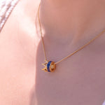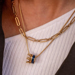 A symbol of elegance, our unique and striking Crown Necklace features a heavy, royal blue filled pendant that is free to move freely around it's chain. Ideal as a statement piece or as a layer with letter pendants and other chains. Comes on a 47cm snake chain with a 5cm extender.