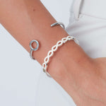 Our oval-shaped hinge bangles open up over the wrist and do not need to slide over the hand. They fits all wrists up to a 19cm circumference.