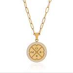 A heavy pendant customised with four initials or sets of initials in each section. Outlined by our signature cream enamel, this is a statement and sentimental piece. You can choose to place 0, 1 or 2 initials in each section, including hearts. Choose from five fonts (pictured).