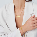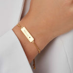Our most comfortable bracelet; the Toggle Chain, offered with free engraving. When tightened, this bracelet sits flush to the wrist for a barely there feel. One size fits all.