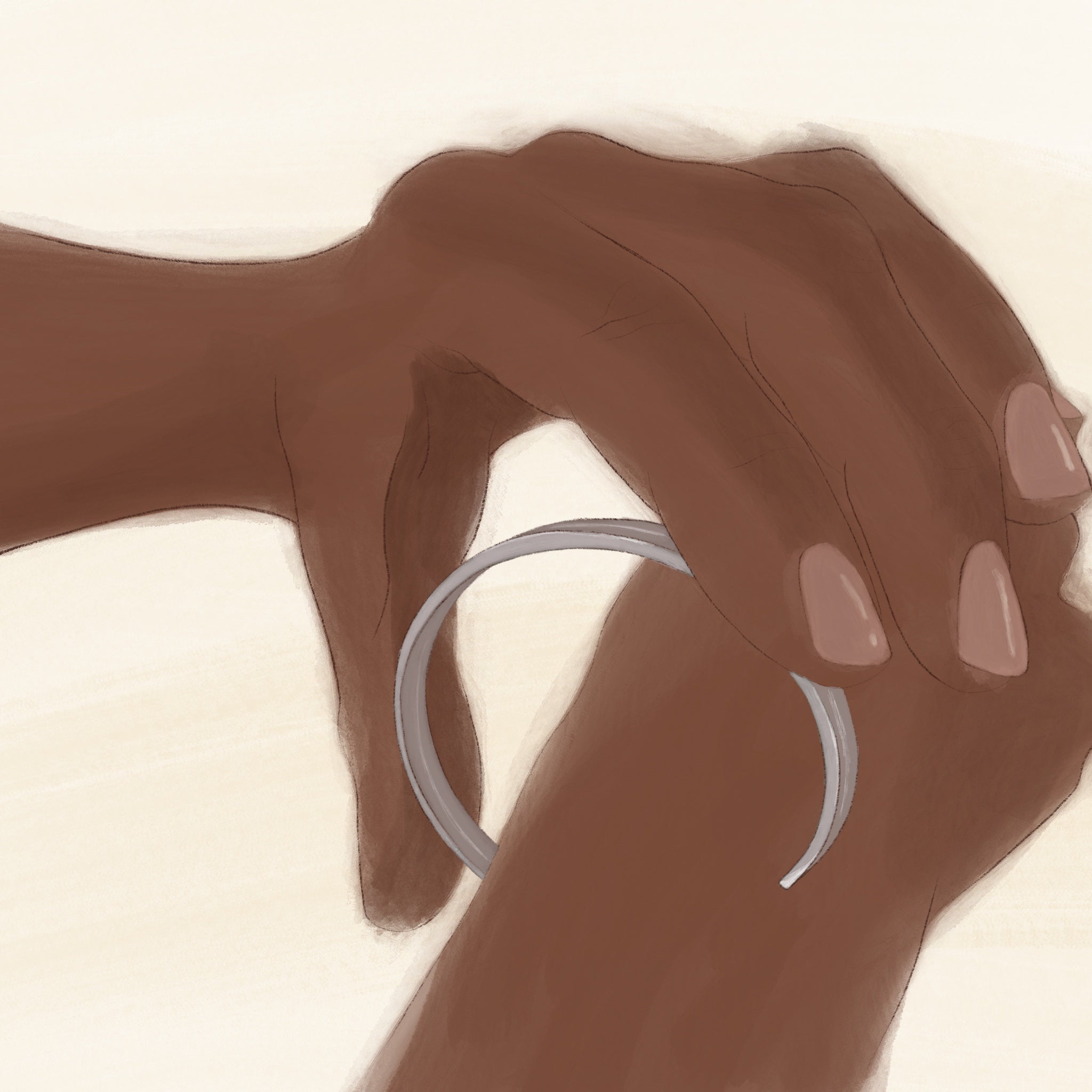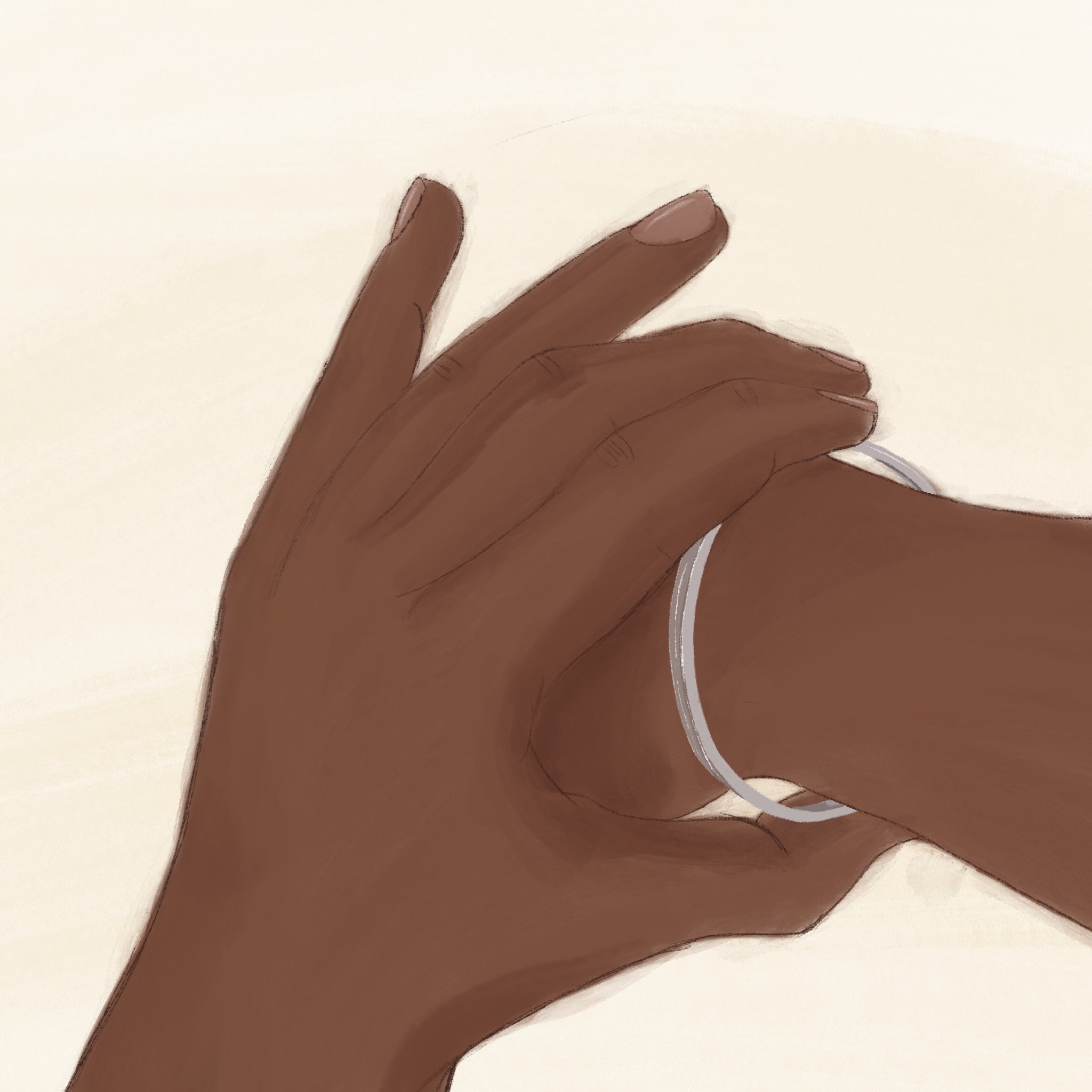 This style of bangle is a solid circular shape and cannot be adjusted. When choosing this style, you must consider sliding the bangle over the whole hand.