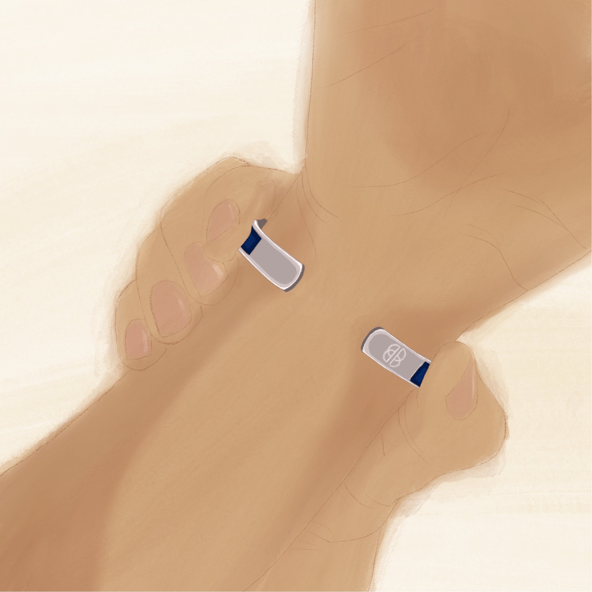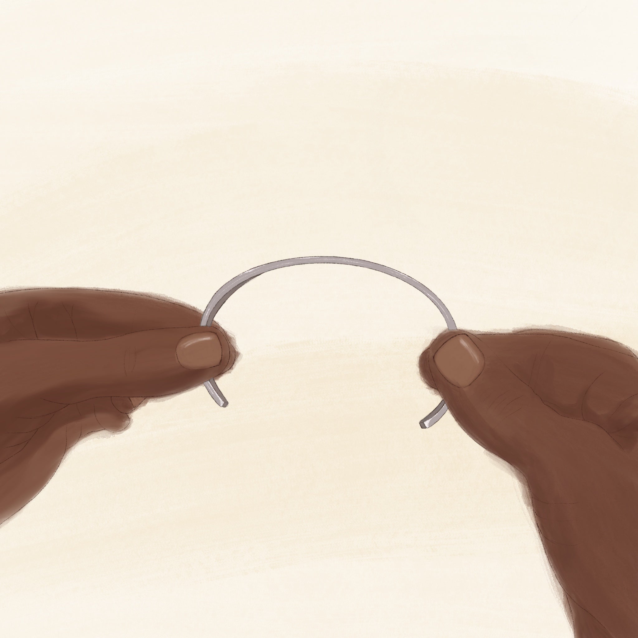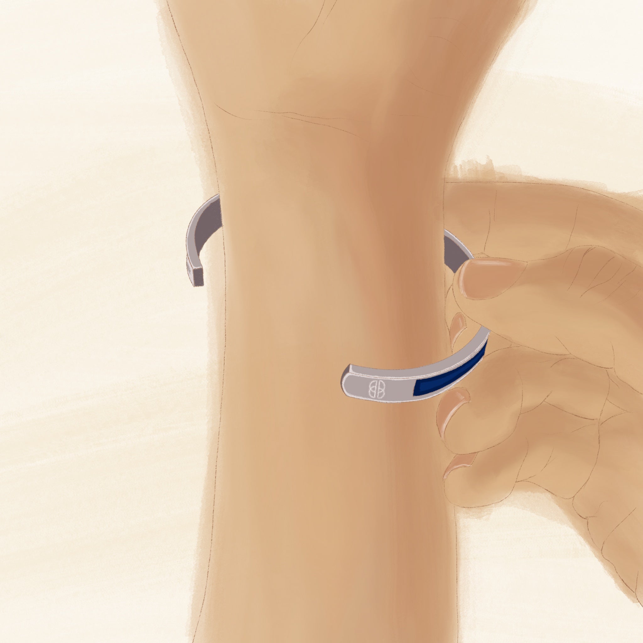 To shape them, bend the sides in toward each other, keeping pressure on the top to prevent a v-shape. You can then push the ends of the bracelet up in towards the wrist to create an oval shape that feels comfortable.